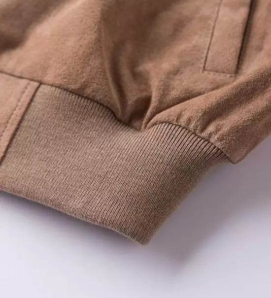 Product Specification: Material: Camel Brown Suede Inside: Plush Polyester Lining Fit: Regular Leather Thickness: 0.8 mm Collar: Mandarin Rib Knit Collar Closure: Long-Lasting Metal Zipper Cuffs: Rib Knit Cuffs Pockets: 2 Side & 3 Inside (1 for smartphone) Recommended Professional Leather Clean Only