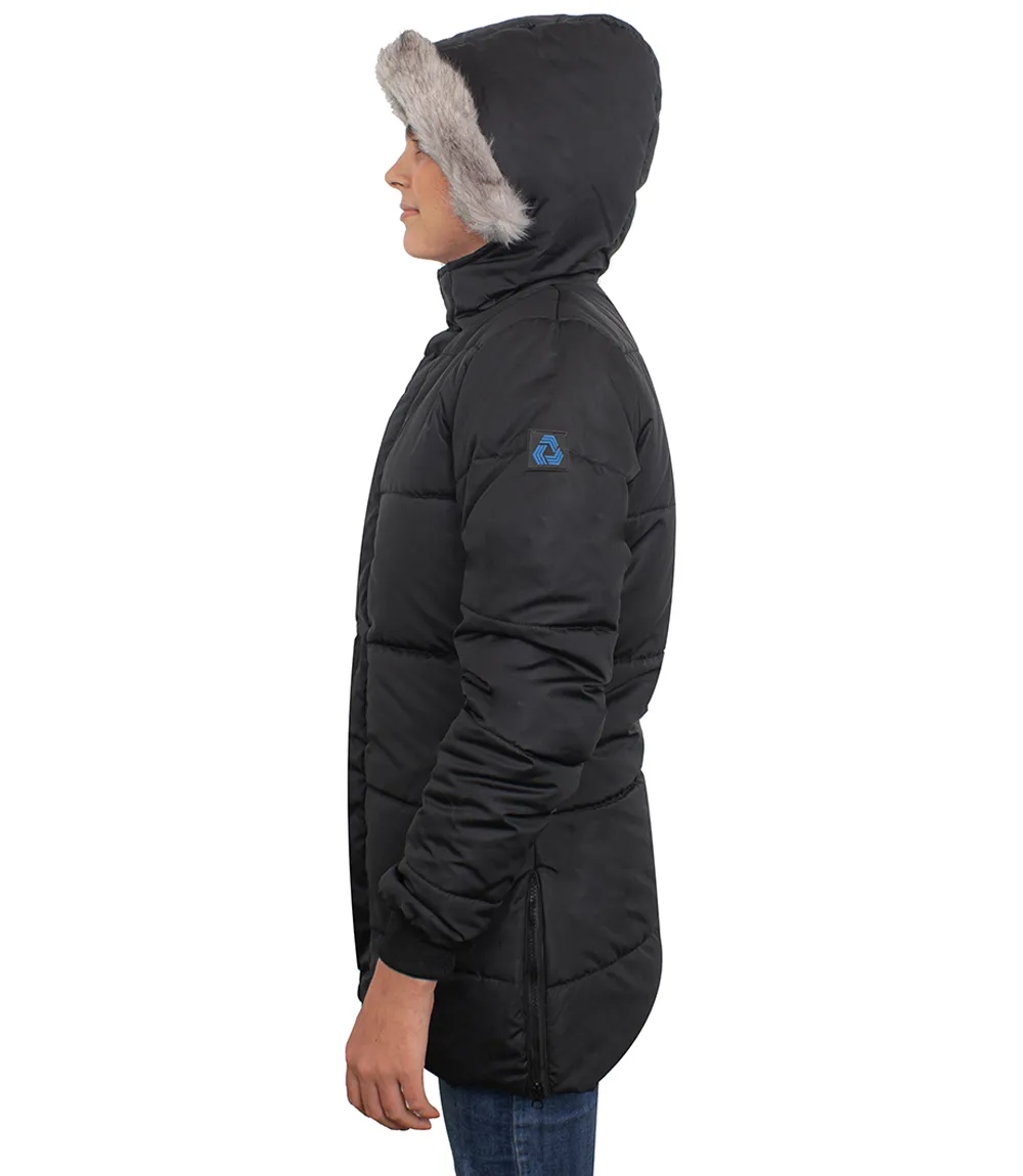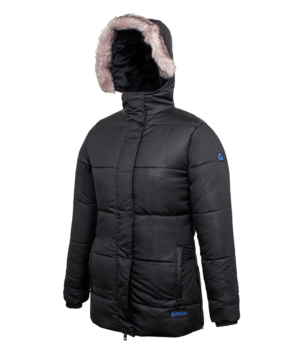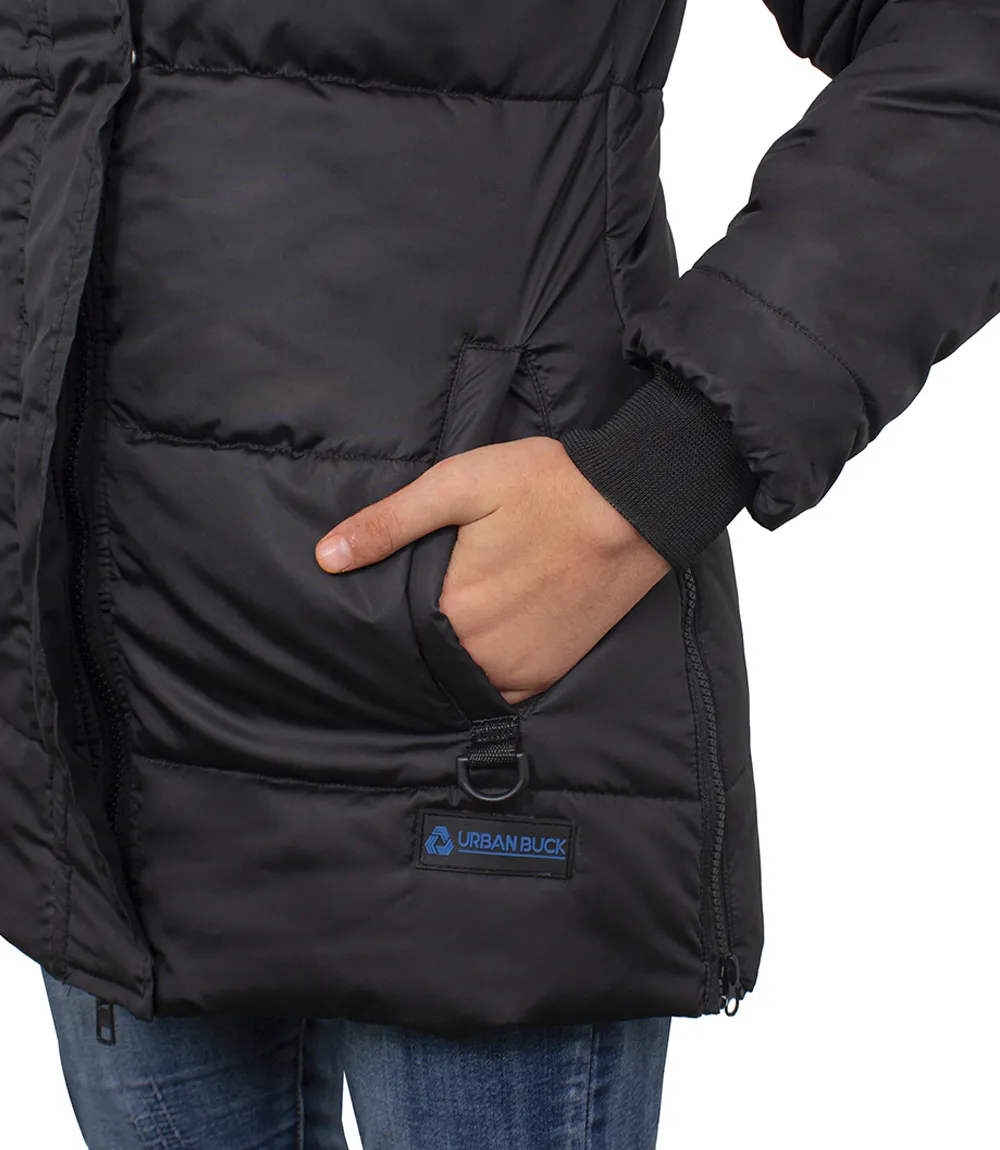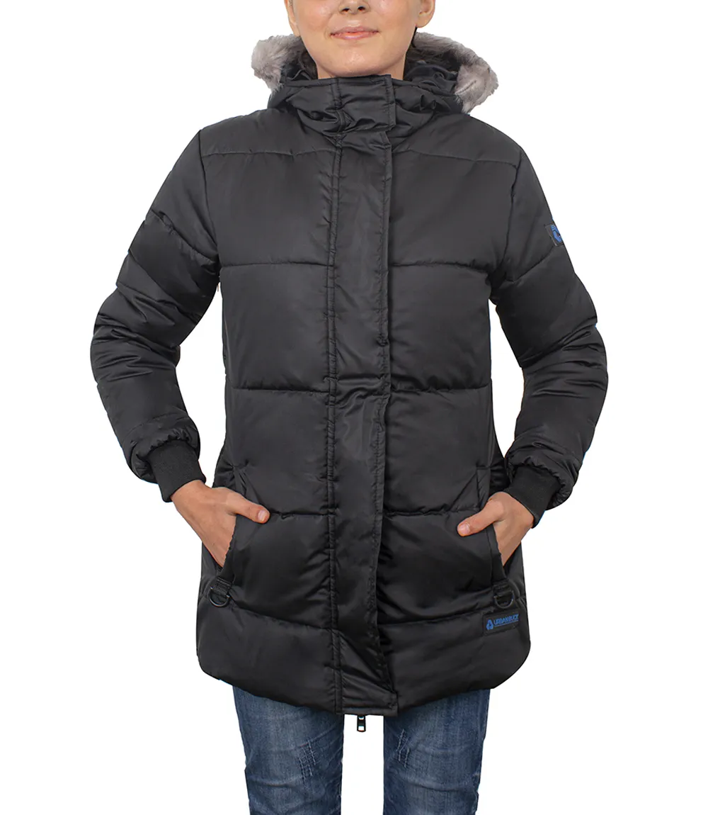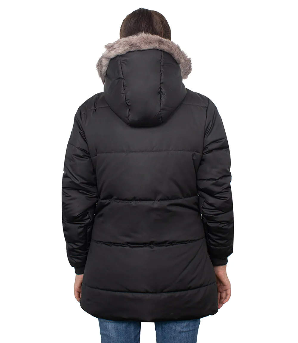 Ella Black Women’s Long Parka Puffer Jacket with Faux Fur Trim Hood