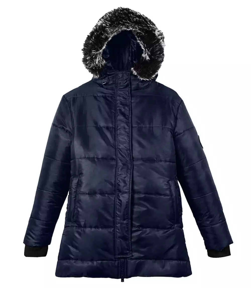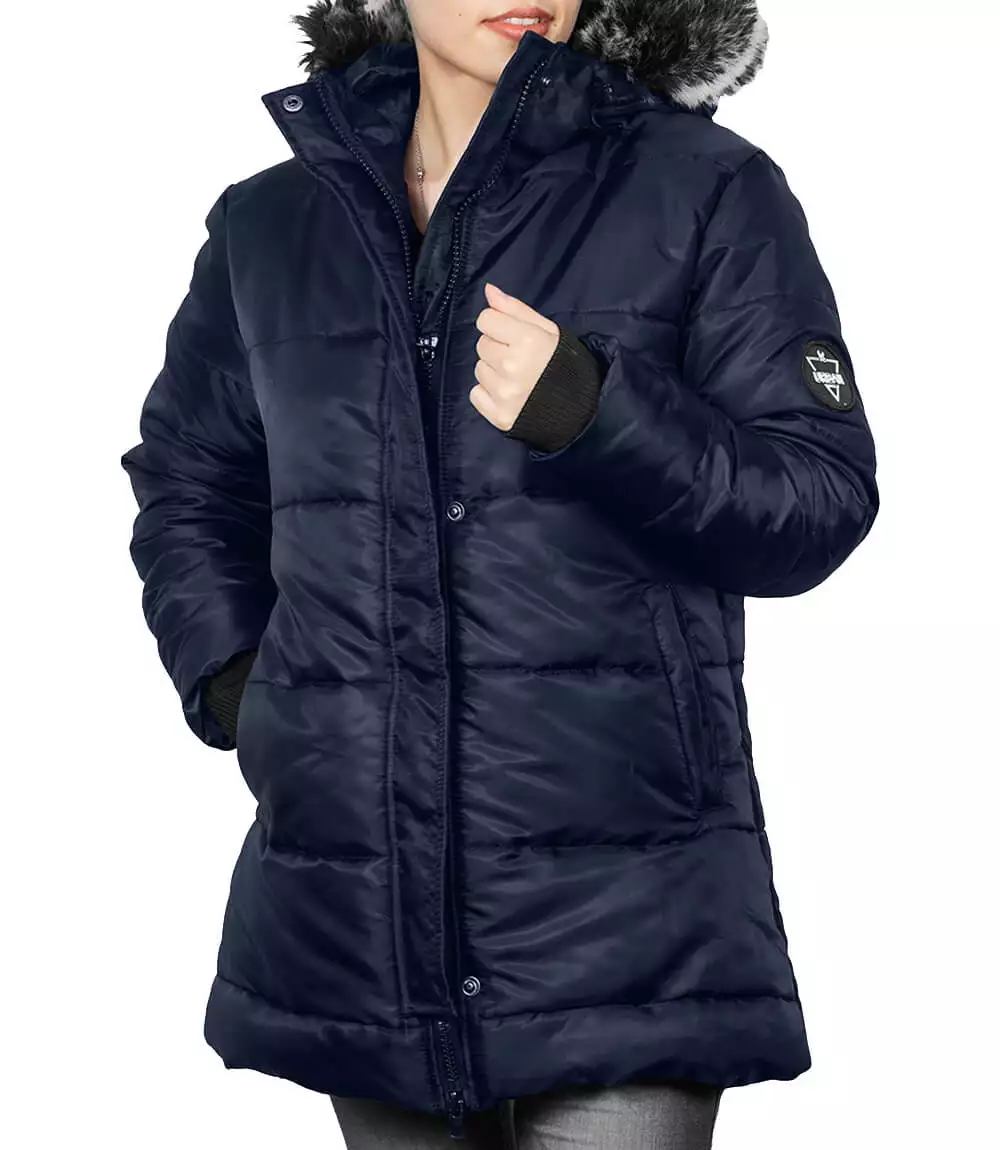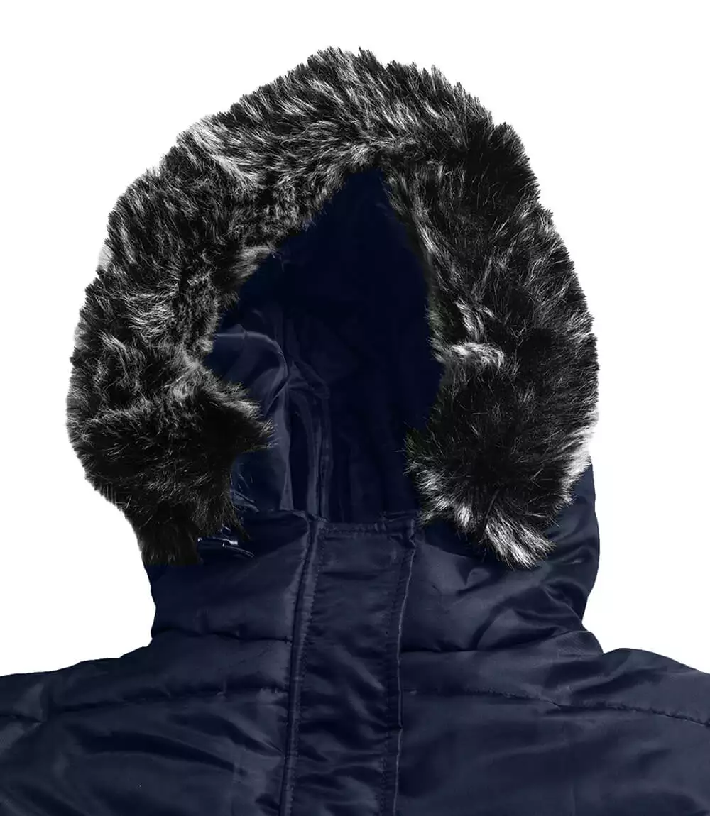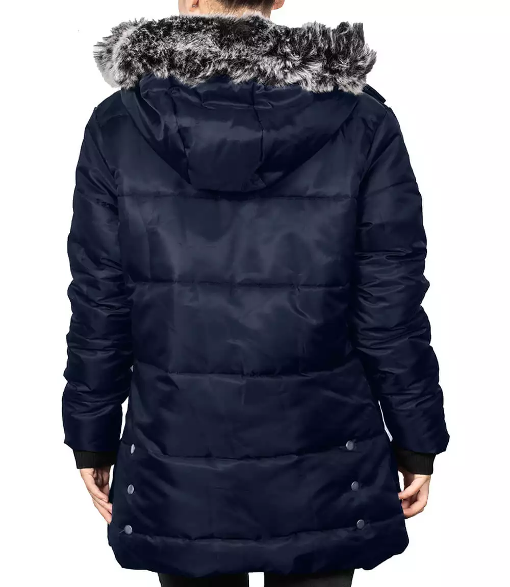 Ella Blue Women’s Long Parka Puffer Jacket with Faux Fur Trim Hood