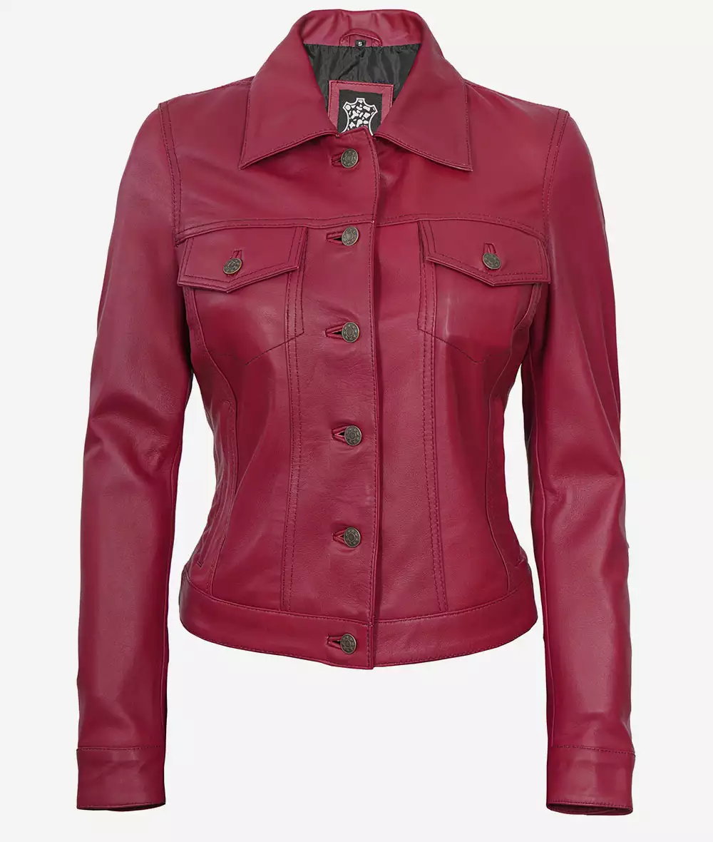 Elevate your fashion game with our Women’s Pink Trucker Leather Jacket. This trendy piece brings a burst of color to your wardrobe while maintaining a classic trucker jacket silhouette. Crafted from genuine leather, its vibrant pink hue adds a playful yet stylish edge to any outfit.