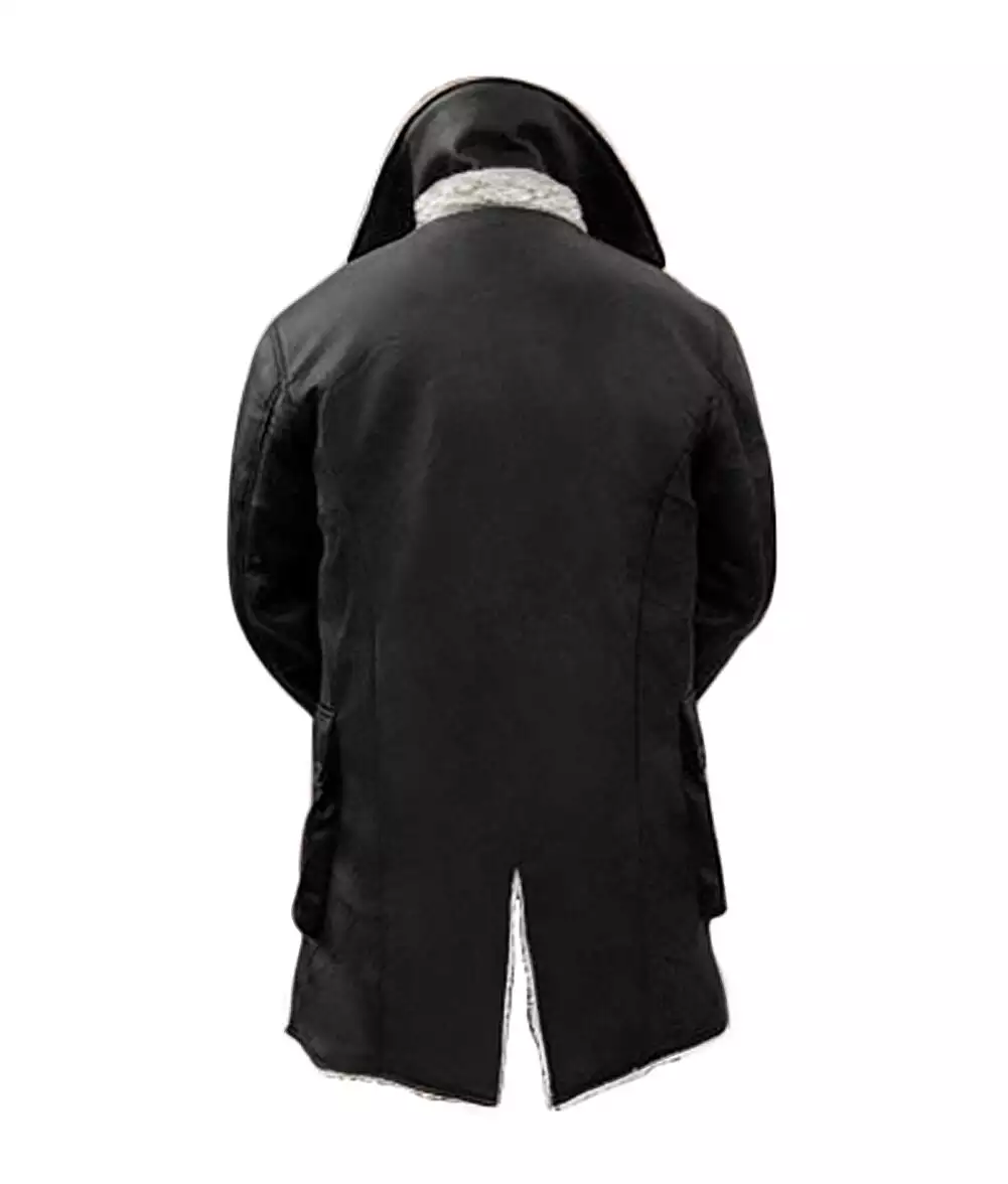 Product Details Material: Black Lambskin Leather Inside: Plush Faux Sherpa Lining Fit: Regular Collar: Wide Collar Closure: Button & Hook Closure Cuffs: Open Cuffs Pockets: 2 Outside & 2 Inside Recommended Professional Leather Clean Only