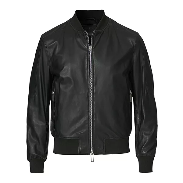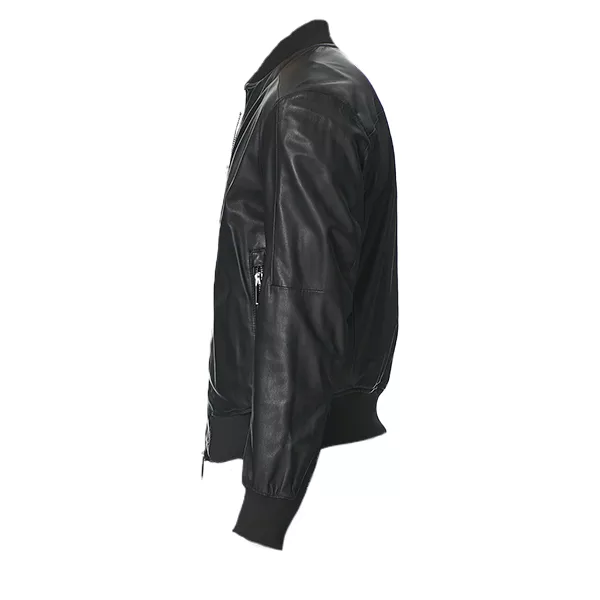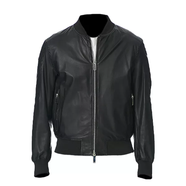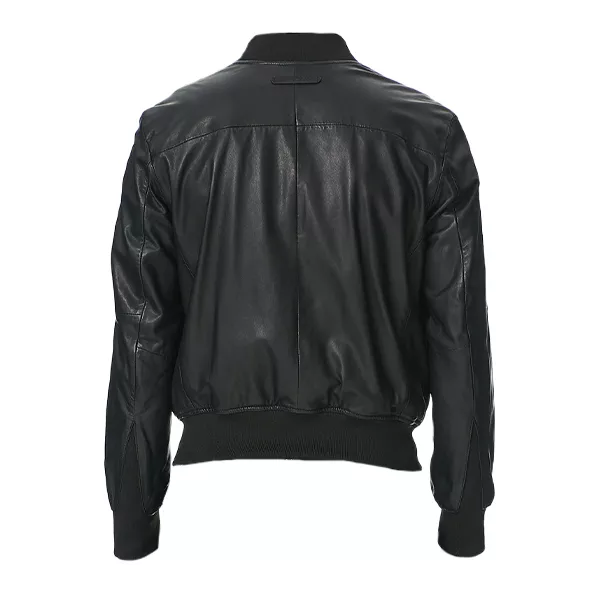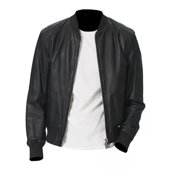 Men’s Black Leather Bomber Jacket