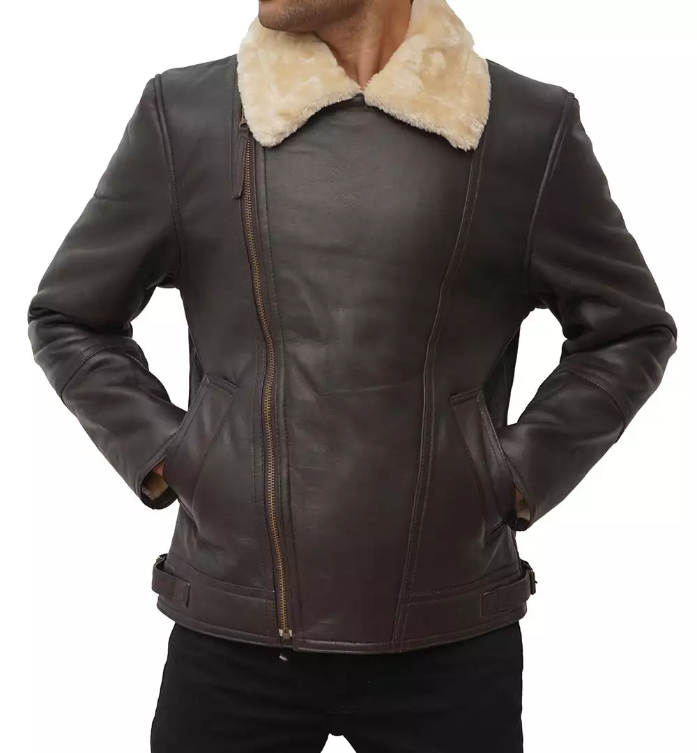 Elevate your winter wardrobe with our Men’s Dark Brown Asymmetrical Shearling Leather Jacket. This statement piece not only exudes style but also provides exceptional warmth and protection. Crafted from durable leather and lined with plush shearling, it’s your perfect companion for staying cozy and looking effortlessly cool during the colder months.
