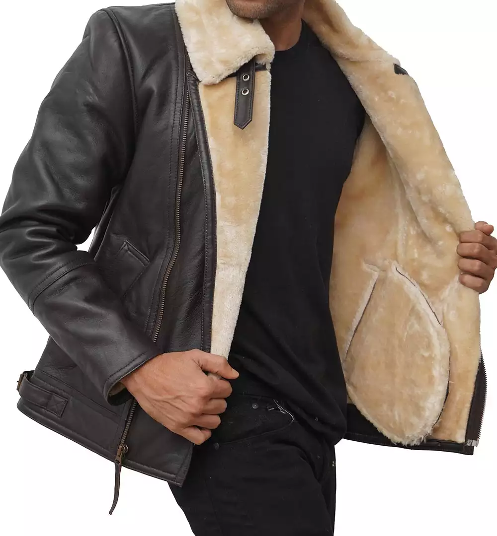 Brown Moto Shearling Jacket for Men