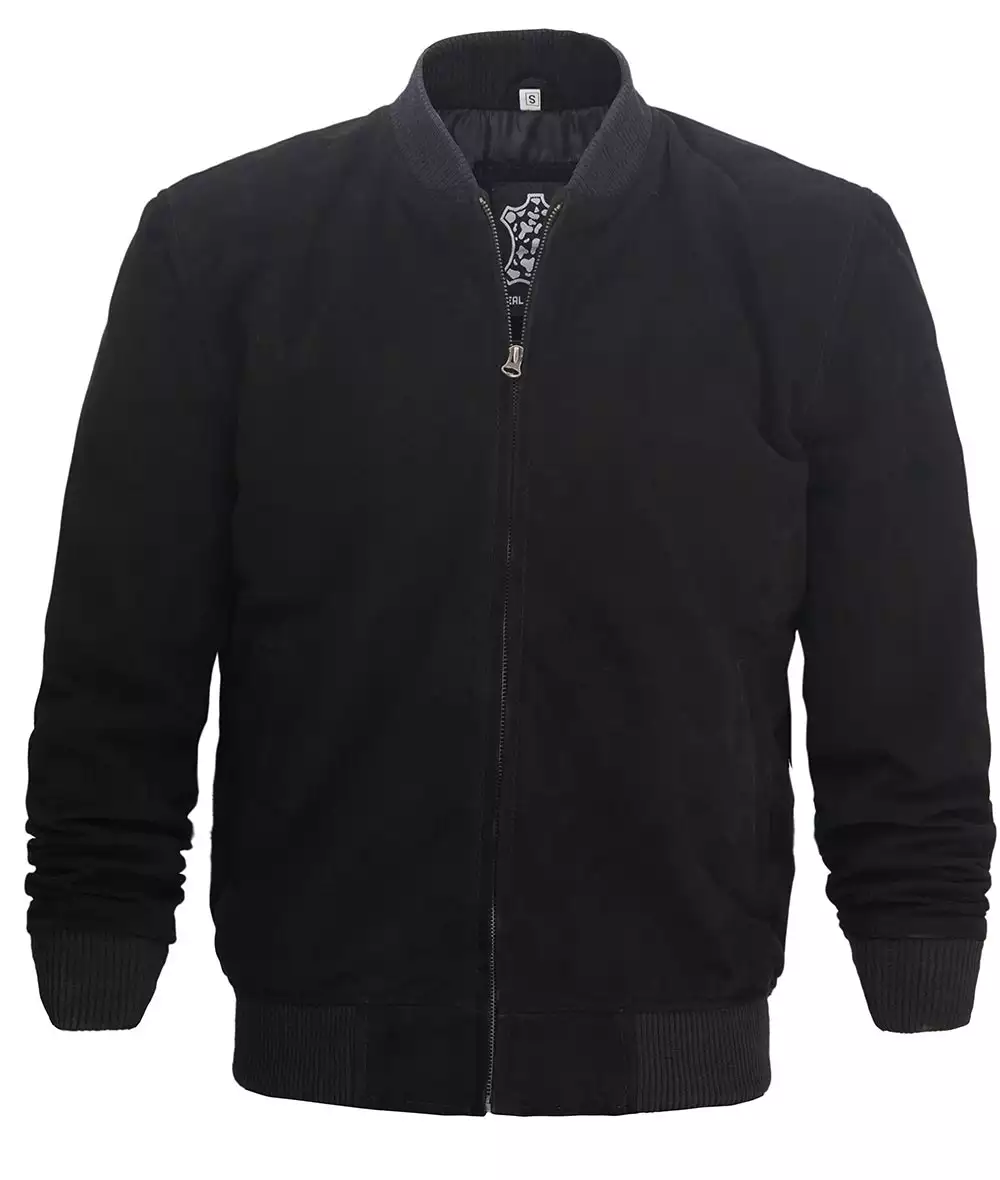 Product Specification: Material: Black Suede Leather Inside: Plush Polyester Lining Fit: Regular Leather Thickness: 0.8 mm Collar: Mandarin Collar Closure: Long-Lasting Metal Zipper Cuffs: Rib Knit Cuffs Pockets: 2 Outside & 3 Inside (1 for smartphone) Recommended Professional Leather Clean Only