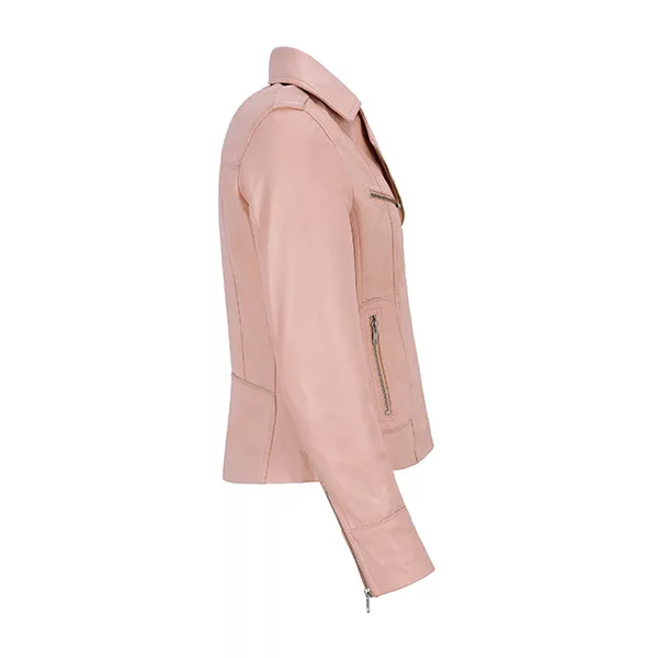 This amazing Women Pink Biker Jacket for your closet is one of the classiest choices to grab and style oneself, which features premium quality leather material and lined with satin stuff for a comfortable carry. Additionally, the apparel has been fabricated with front zip-up closure and has zipped chest pocket along with front zipper closure.