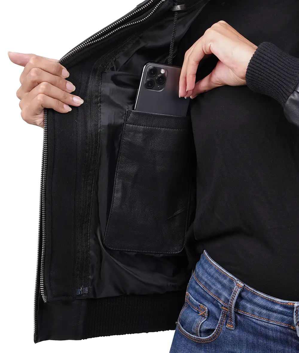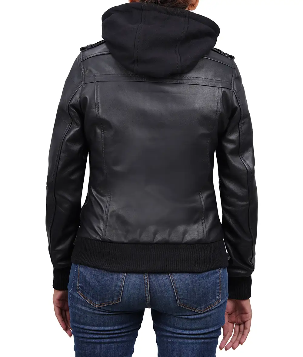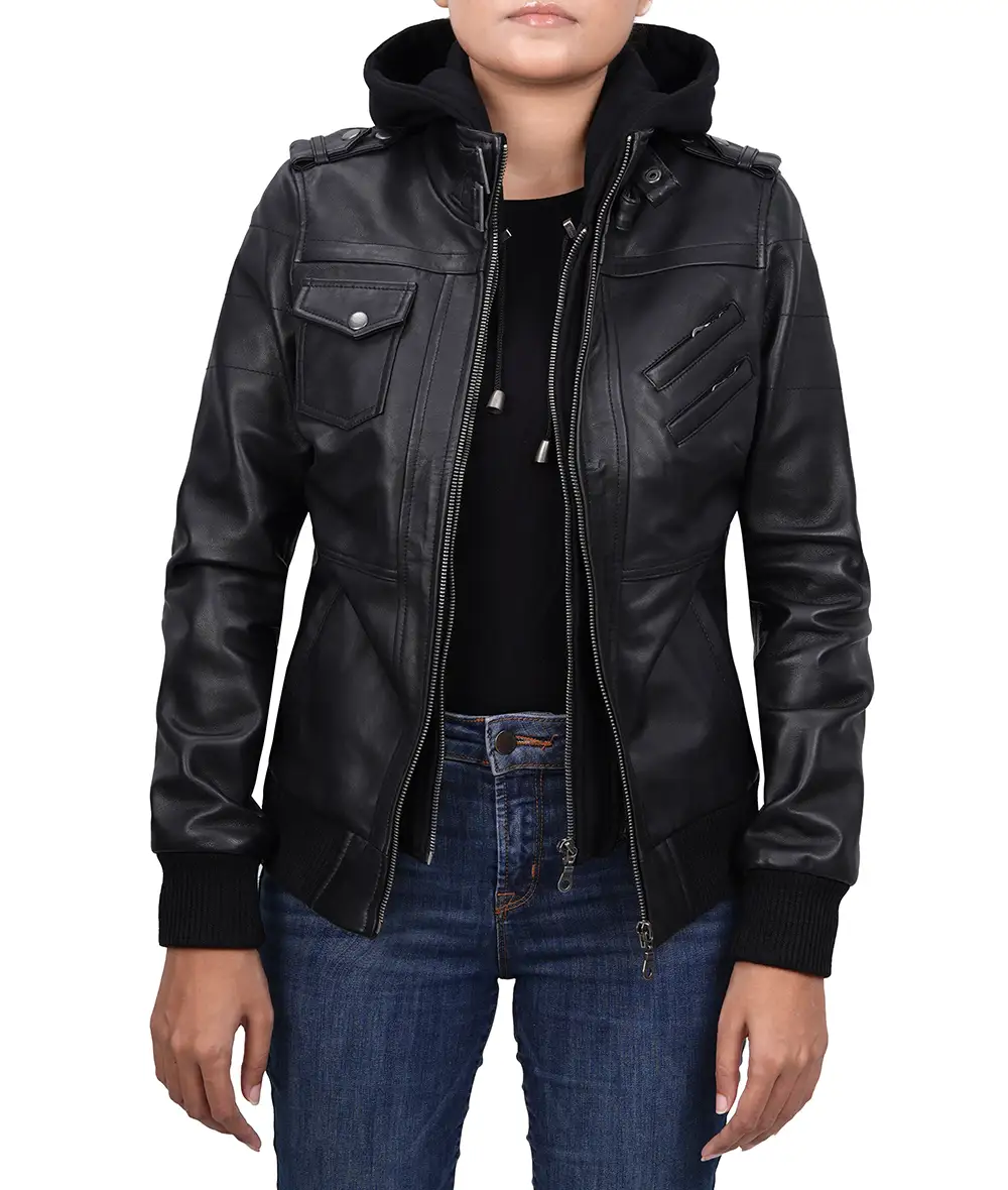 Redefine your wardrobe with our Women’s Black Leather Bomber Jacket. Designed with a nod to aviation heritage, this jacket combines the rugged appeal of bomber jackets with the added versatility of a detachable hood. Whether you’re taking to the skies or the streets, ensure you do so with unmatched style.