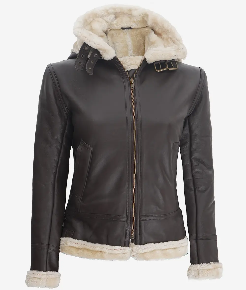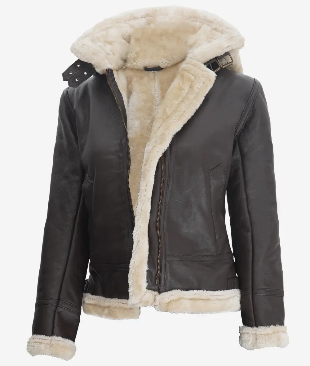 Be the first to review “Womens Dark Brown Hooded Shearling Leather Jacket”