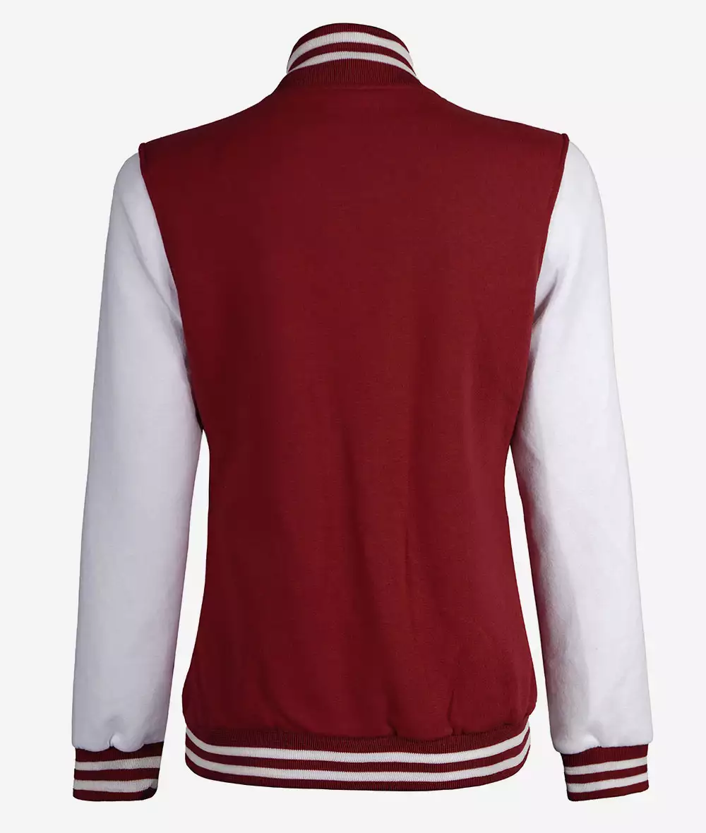 Be the first to review “Womens Maroon Varsity Jacket with White Sleeves – Baseball Bomber Jacket”