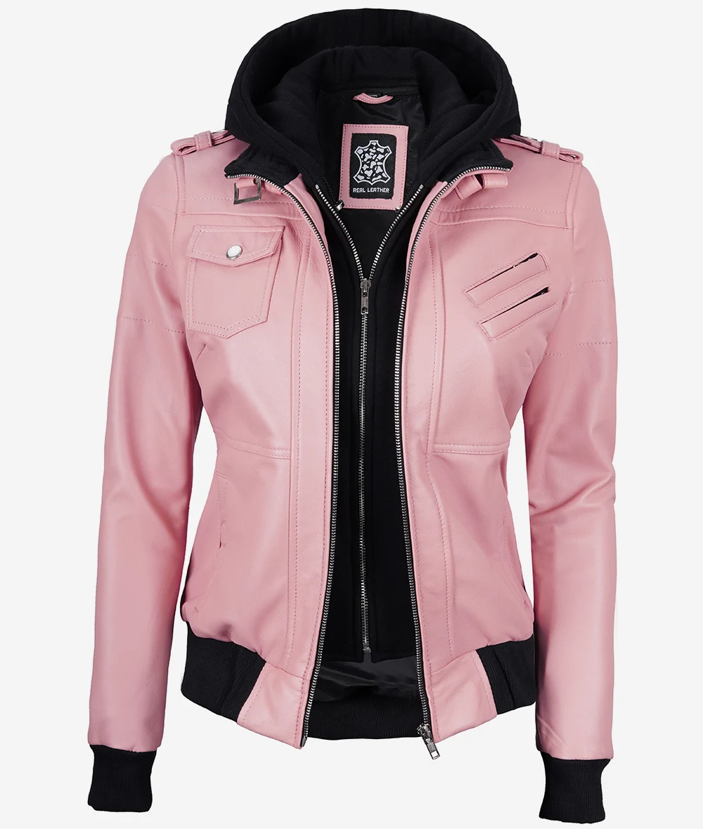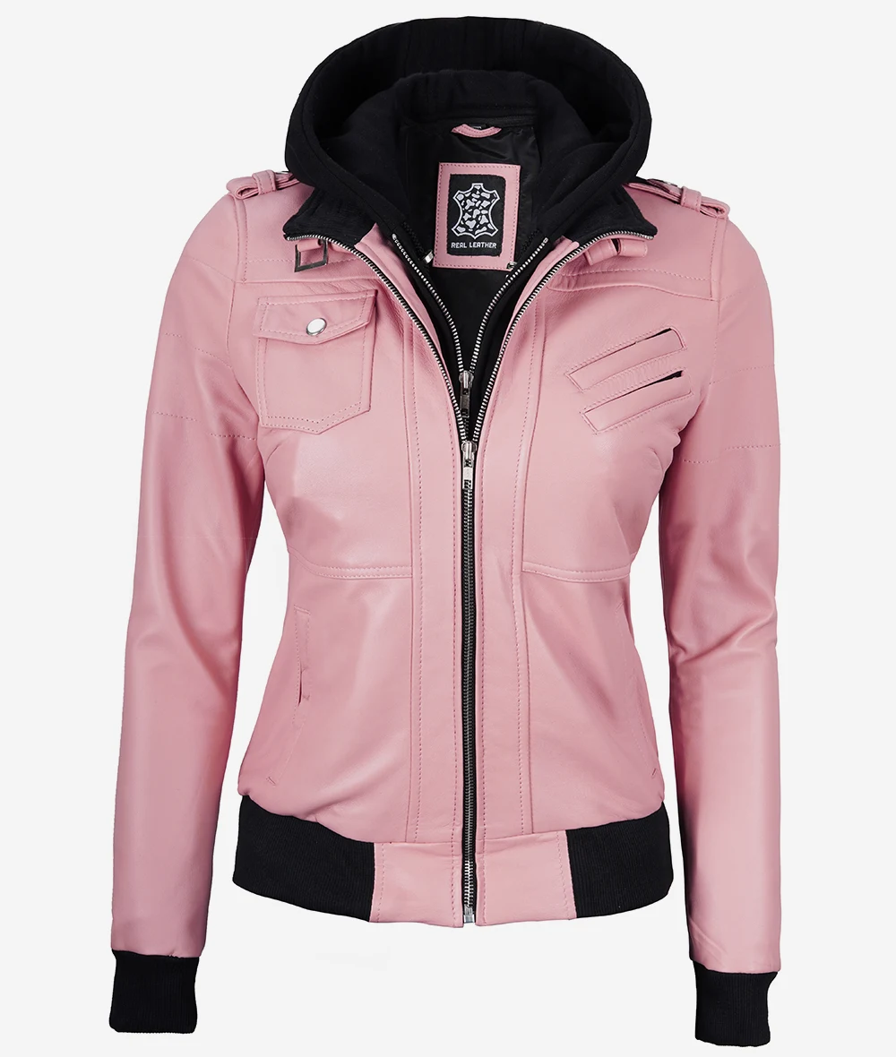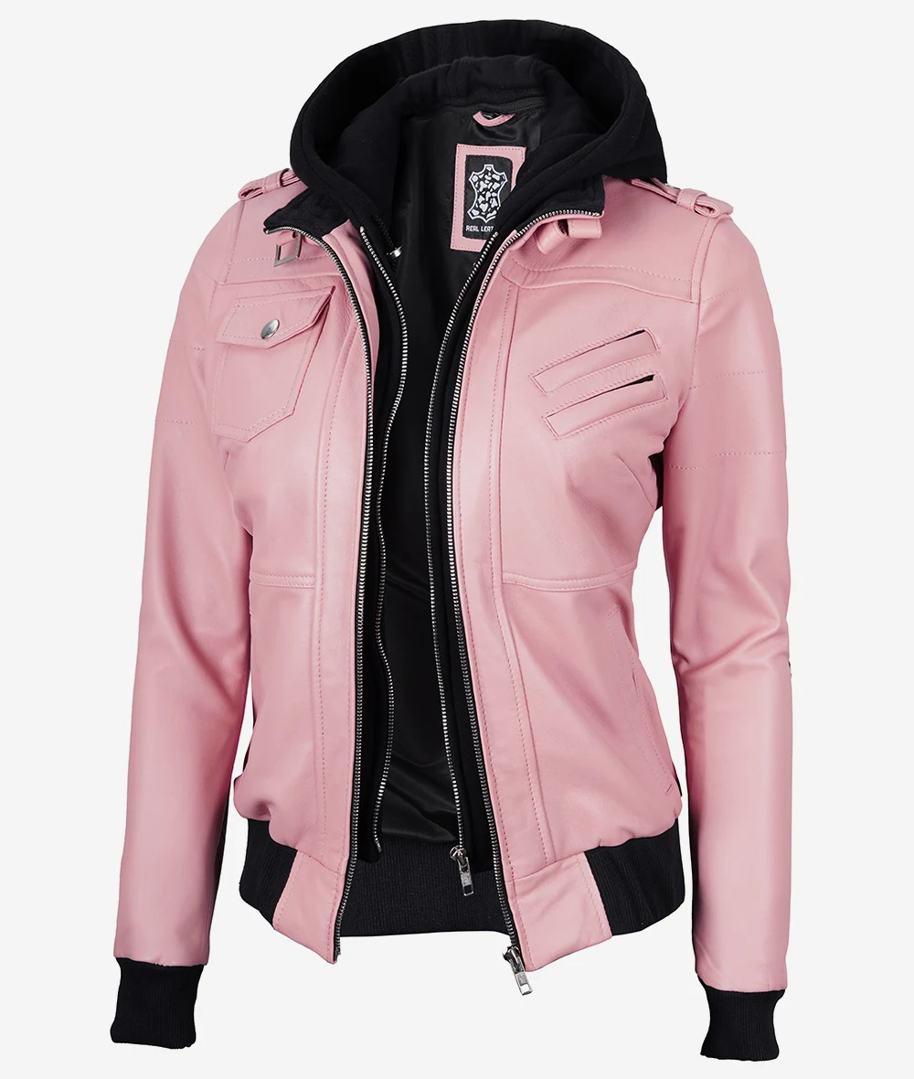 Redefine your wardrobe with our Women’s Pink Leather Bomber Jacket. Designed with a nod to aviation heritage, this jacket combines the rugged appeal of bomber jackets with the added versatility of a detachable hood. Whether you’re taking to the skies or the streets, ensure you do so with unmatched style.