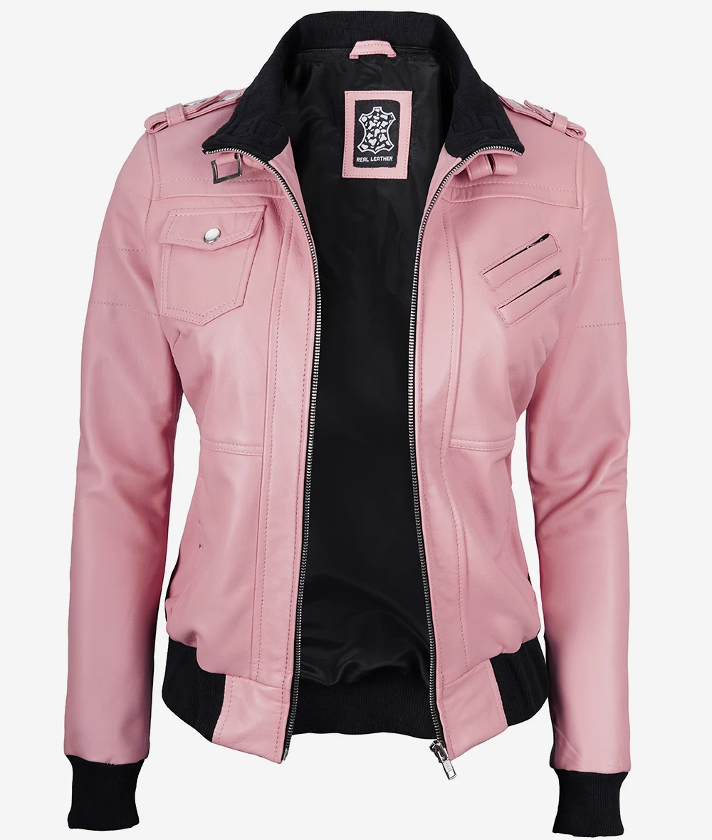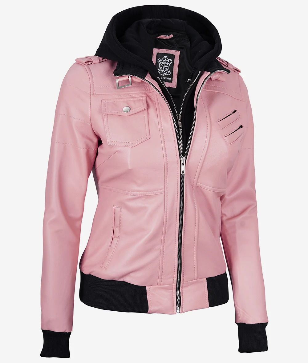 Womens Pink Leather Jacket With Hood Redefine your wardrobe with our Women’s Pink Leather Bomber Jacket. Designed with a nod to aviation heritage, this jacket combines the rugged appeal of bomber jackets with the added versatility of a detachable hood. Whether you’re taking to the skies or the streets, ensure you do so with unmatched…