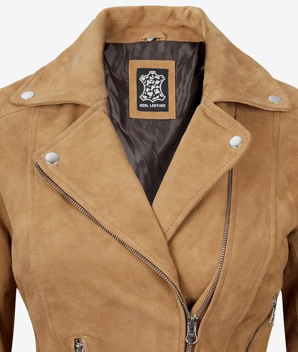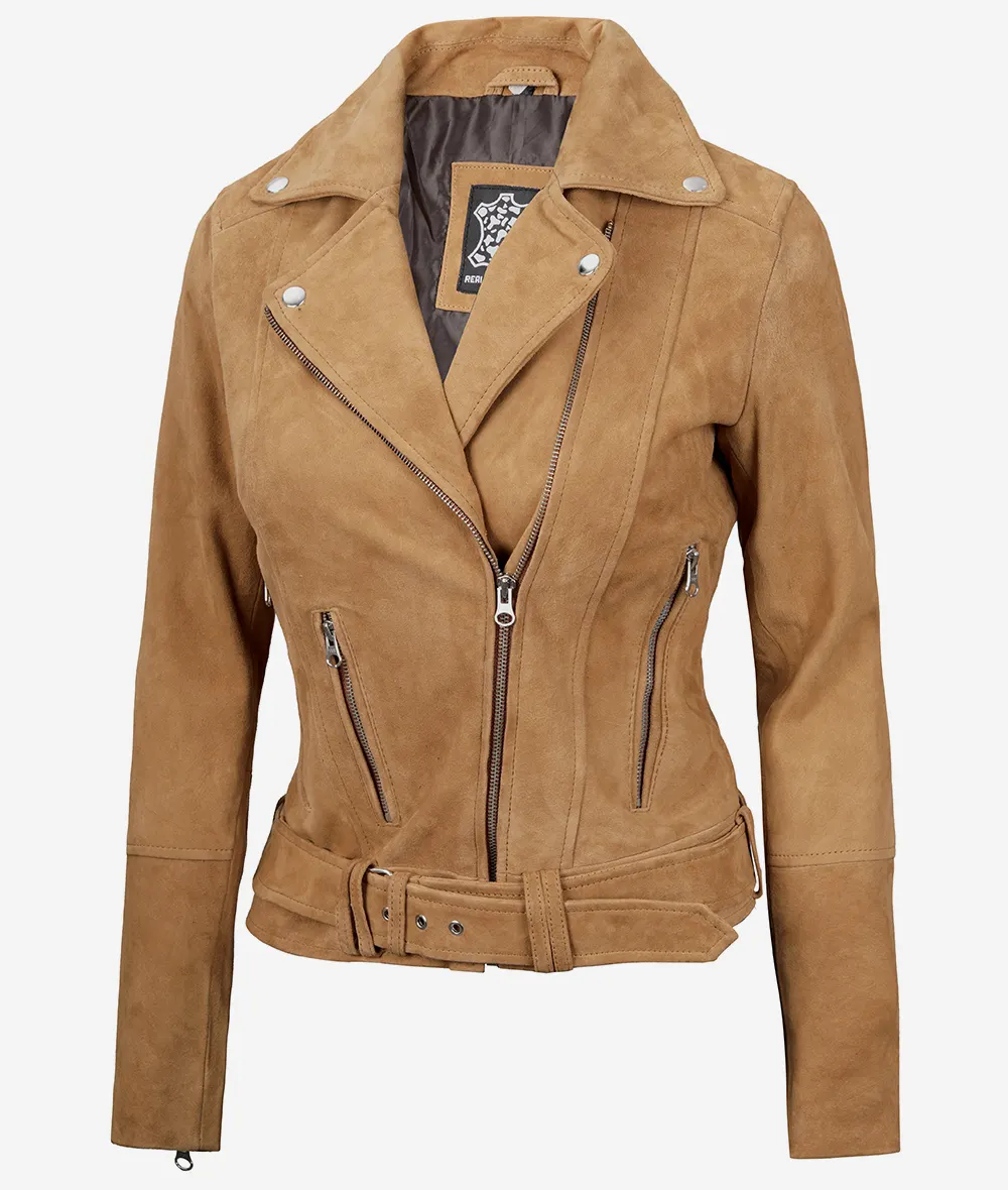 Unveil your inner rebel with our Women’s Brown Suede Biker Leather Jacket. Tailored to perfection, this jacket encapsulates the fearless spirit of the road while exuding an elegant charm. Whether you’re on a bike or making a fashion statement downtown, this suede masterpiece ensures you do so with unmatched grace.