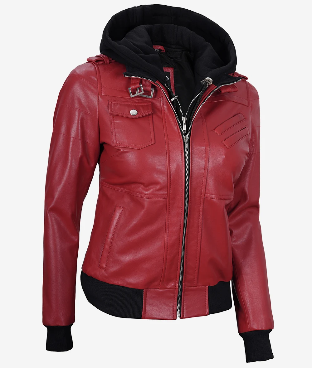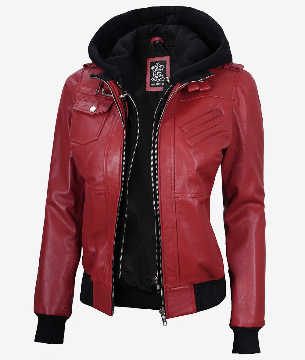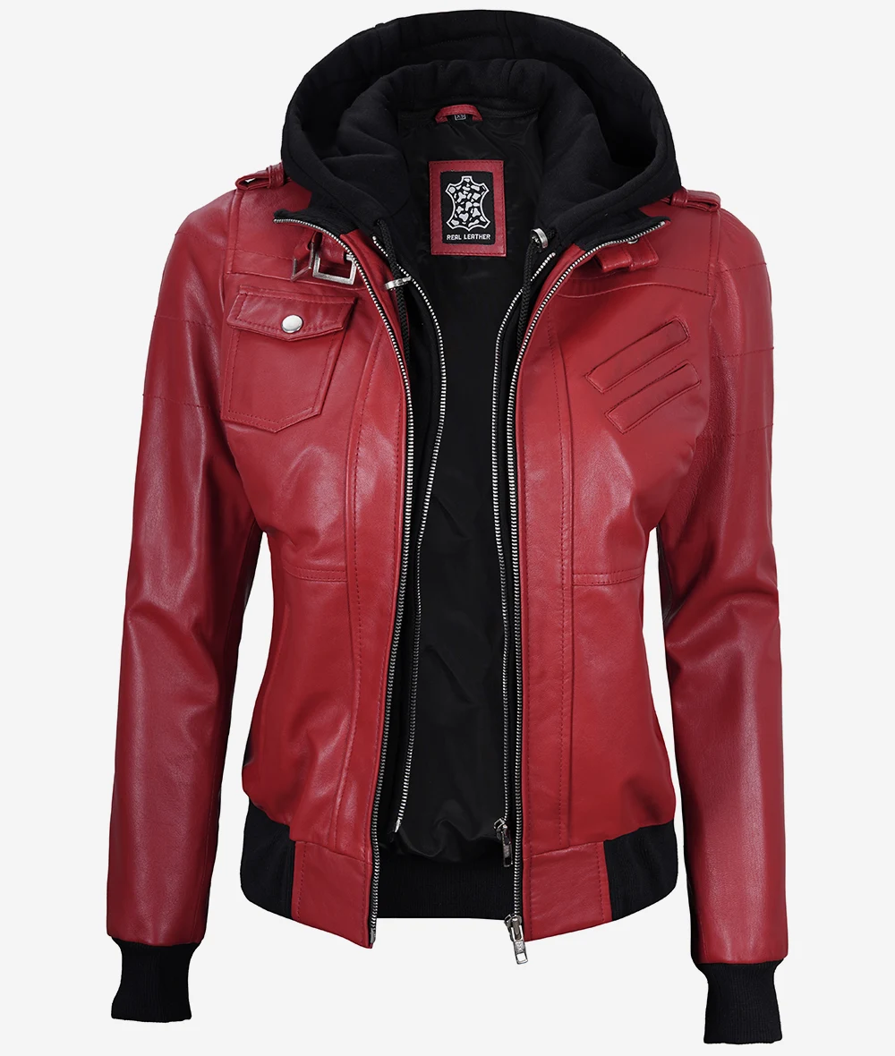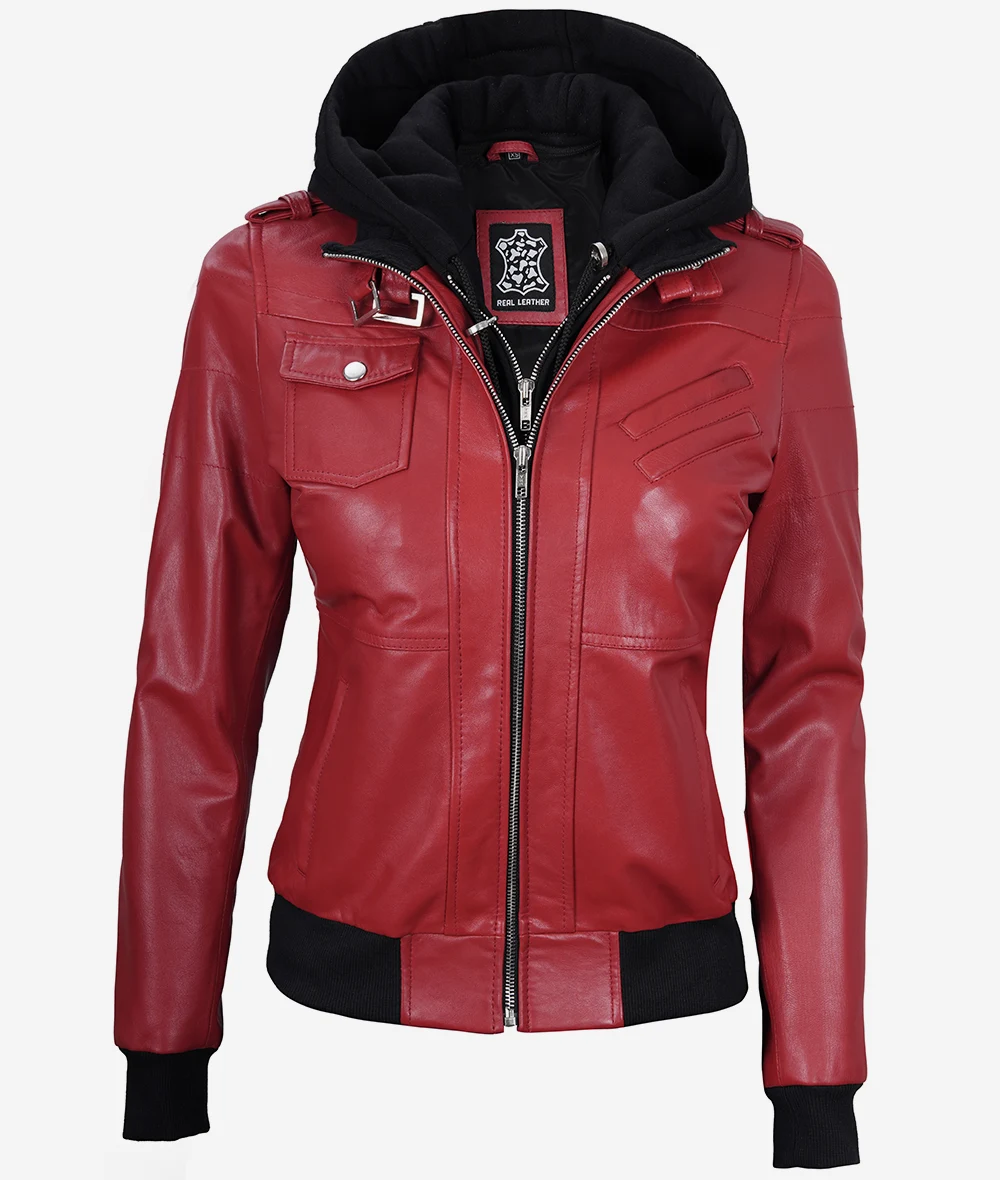 Womens Red Leather Jacket With Hood Redefine your wardrobe with our Women’s Red Leather Bomber Jacket. Designed with a nod to aviation heritage, this jacket combines the rugged appeal of bomber jackets with the added versatility of a detachable hood. Whether you’re taking to the skies or the streets, ensure you do so with unmatched…