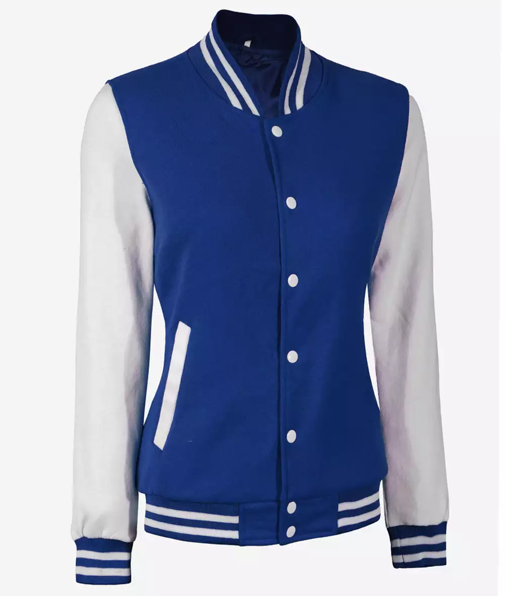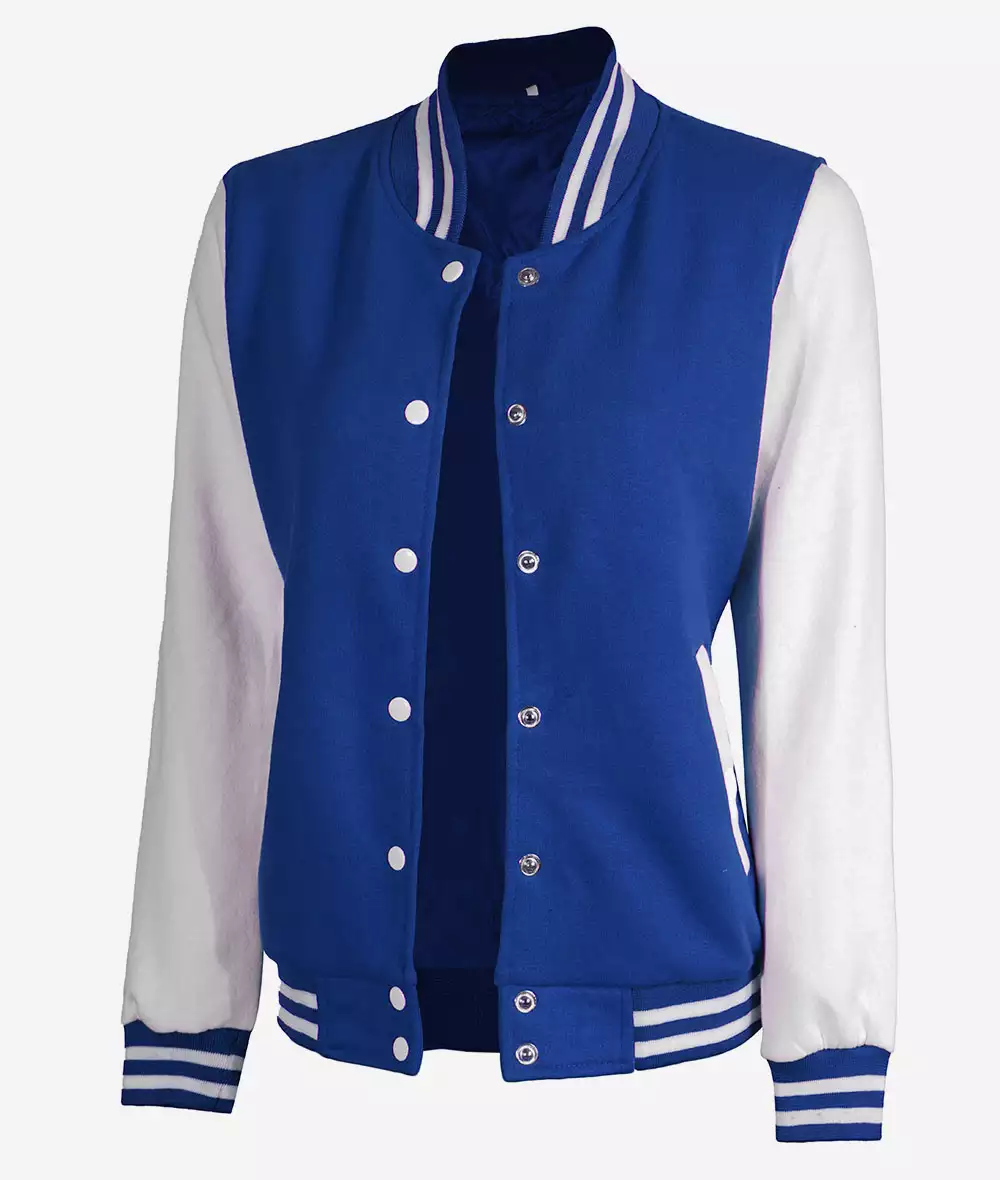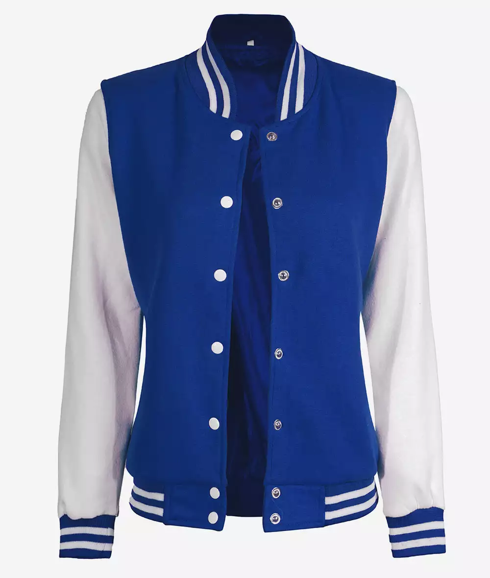 Be the first to review “Women’s White and Royal Blue Baseball-Style Letterman Bomber Jacket”